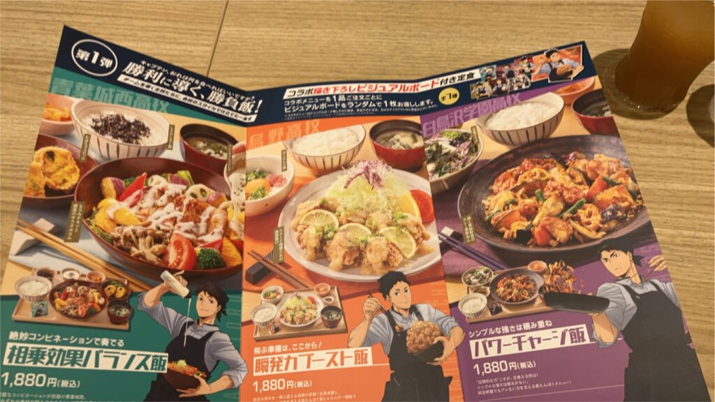 ハイキュー!コラボ コメディカル 2025.10.182025.12.11 日頃からハイキュー好きを公言している私ですが、この度大戸やとハイキューのコラボメニューをいただきに行きました。特別なメニューに大興奮でした!どれをオーダーしたかは秘密です。 CT ノヅキ