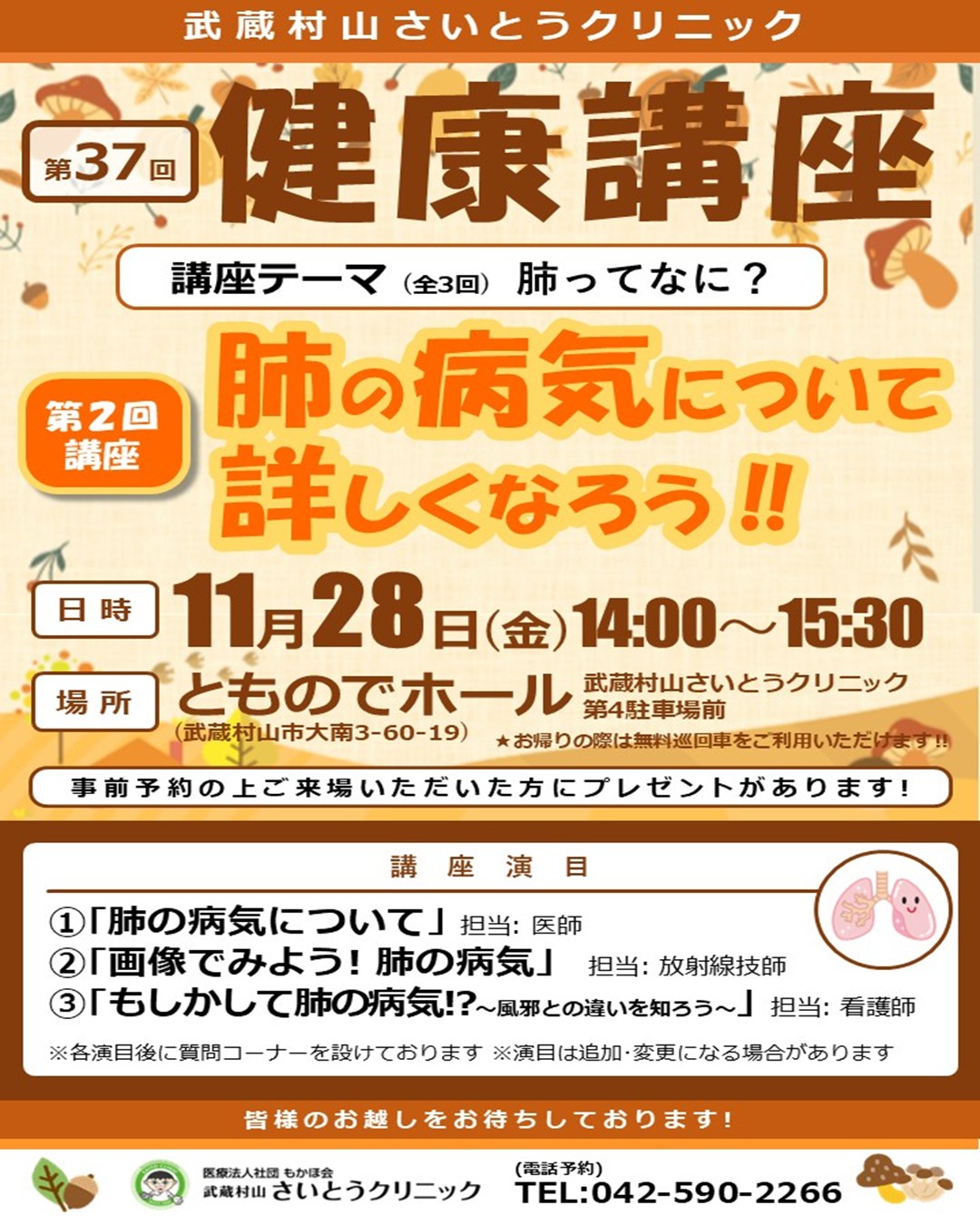 2025年11月28日(金)に第37回健康講座を開催いたします。