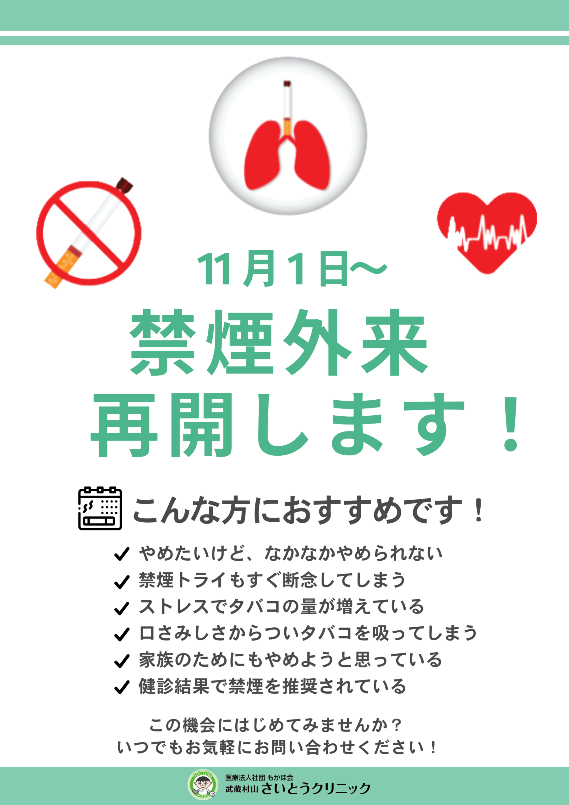 ★禁煙外来を再開します(2025年11月1日~)