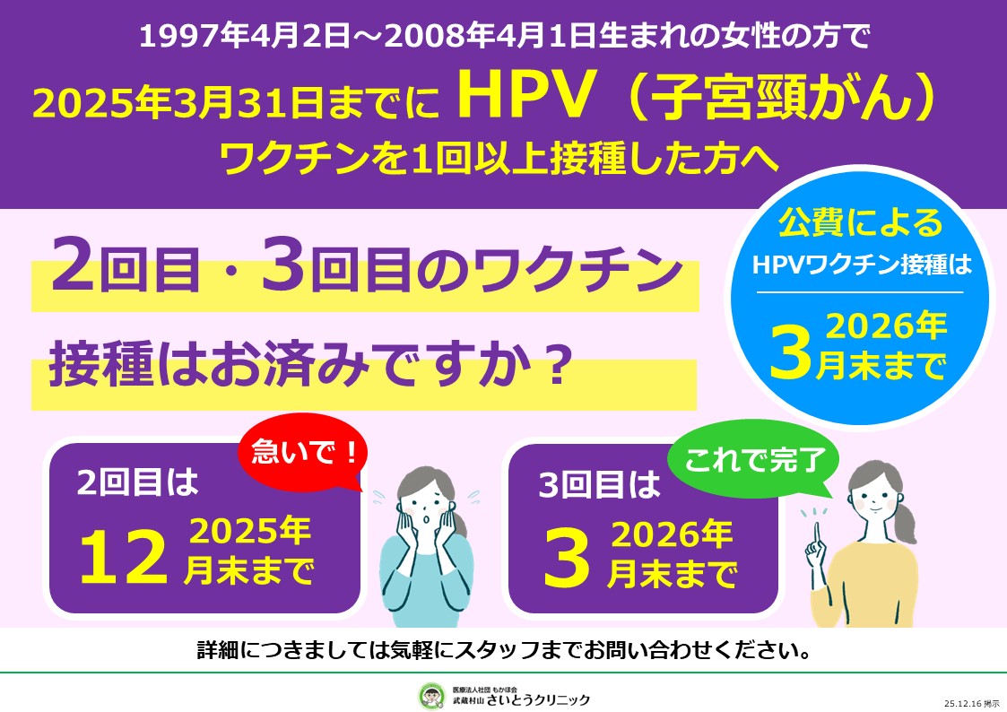 HPVワクチン(子宮頸がん)の2回目、3回目の接種はお済みですか?