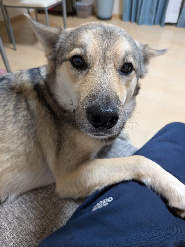 最近ソファーで携帯をいじっていると、うちの犬が邪魔をしてきます😅